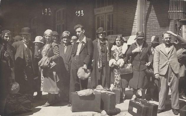 Travelling light - pilgrims at a French railway station, probably Lourdes, 1920s
