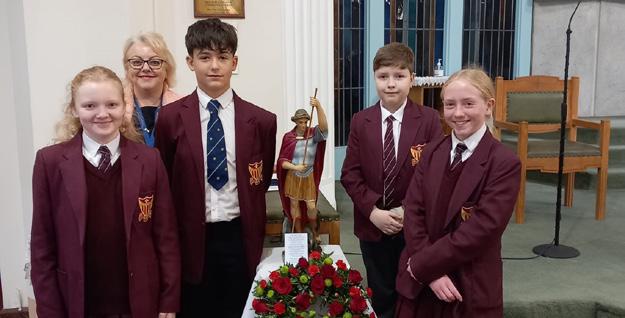 Council 18, Widnes: Following on from the news in the May edition about the Christmas photo competition winners from Saints Peter and Paul Catholic High School in Widnes, Ged Newport and Philip Higgins – respectively the grand knight, and action and youth officer from council 18 – visited the school to present the prizes. Henry, Isla and Amelia, the competition winners, were delighted with the certificates, trophies and cash prizes provided by the KSC.