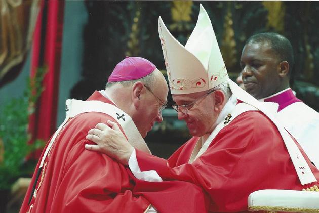 Archbishop McMahon receiving the Pallium from Pope Francis in Rome on 29 June 2014