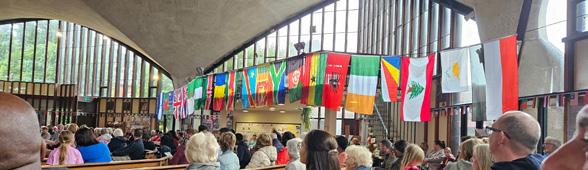 St Agnes has been holding an annual ‘Table of Fellowship’ since 2021. This year’s service was conducted by Fr Anton Fernandopulle, Fr Moses Henry Ariho, Fr Richard Sloan, Deacons Justin Malewezi and Mike Whelan, and student Nicholas Burundian. The early-June event was run by the Huyton CARJ group and a group of parish volunteers, and was attended by service users of SHARe Knowsley, and over 200 families and guests, from over 20 countries. The church was festooned with flags from all nations, and some of the parishioners and children wore their native clothes. The Bidding Prayers were said in 7 different languages. The service was followed by conversation, games, and a table of international foods to share, brought by the participants.