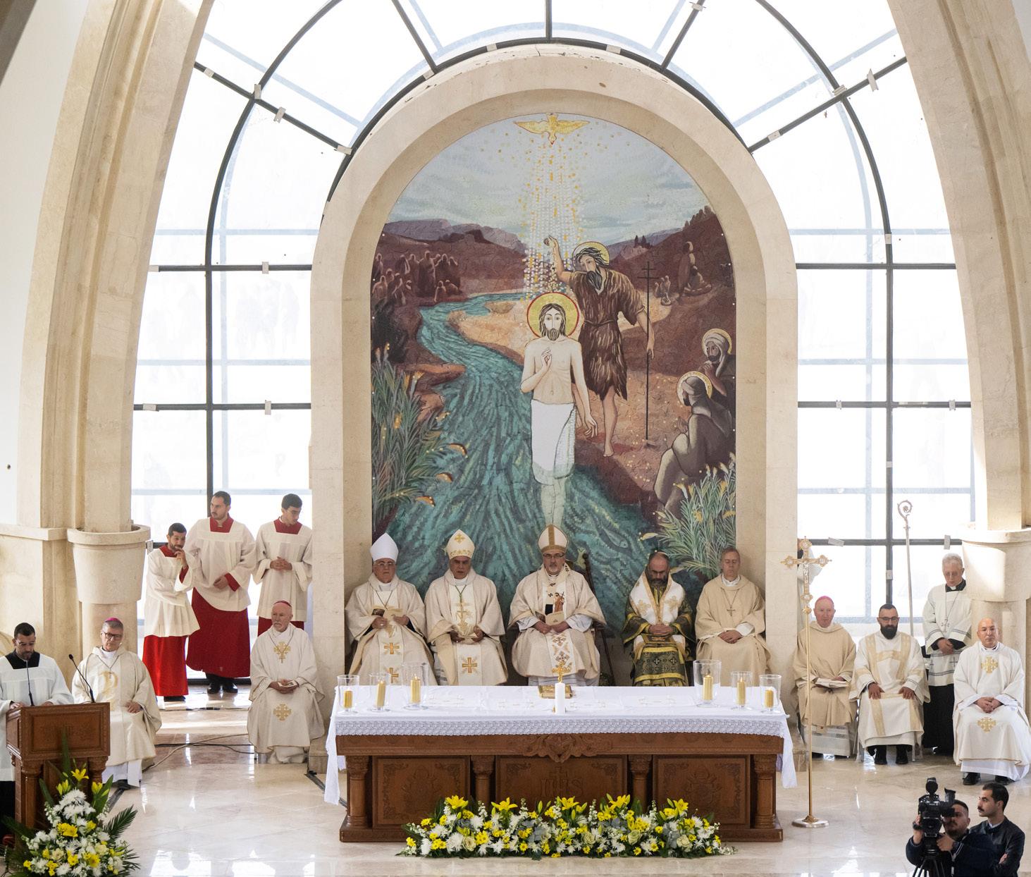 Christendom. At this place God the Father announced Jesus to be his beloved Son and John pointed to Jesus, saying: ‘Behold, the Lamb of God’. From the early Christian Church, countless numbers of pilgrims identified the site, were baptised and built churches to preserve this sacred spot. The Jordanian Government donated different pieces of land to the various Christian communities to build churches to commemorate the baptism of Jesus. This place was visited by Pope St John Paul II in 2000, Pope Benedict XVI in 2009 and Pope Francis in 2014. In 2015 the place was designated a World Heritage Site.
