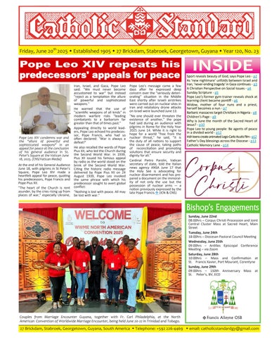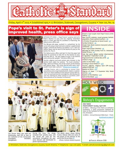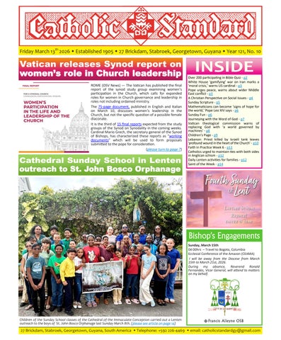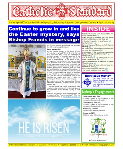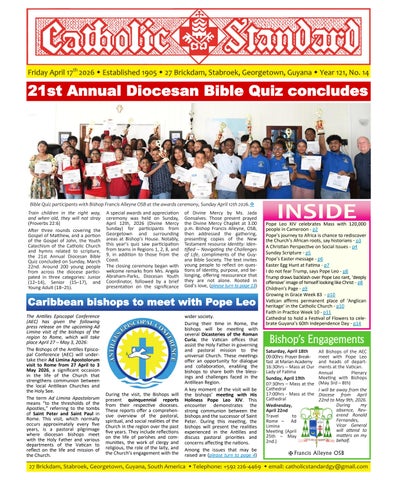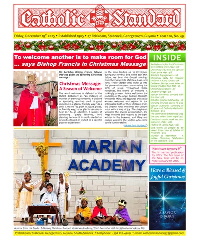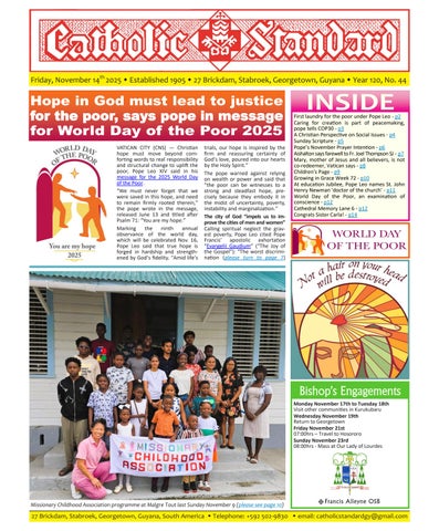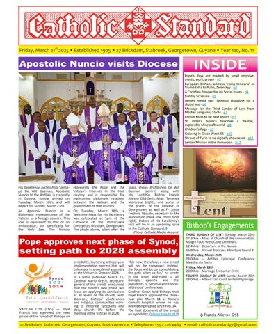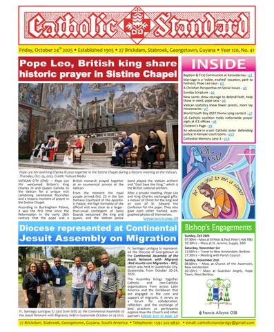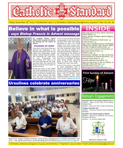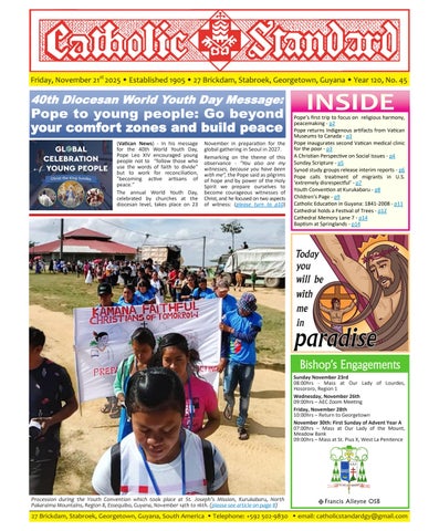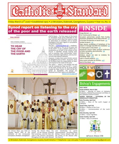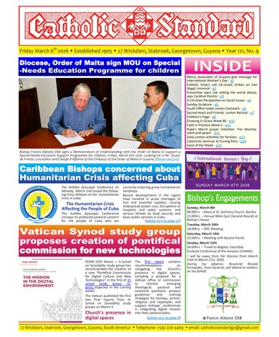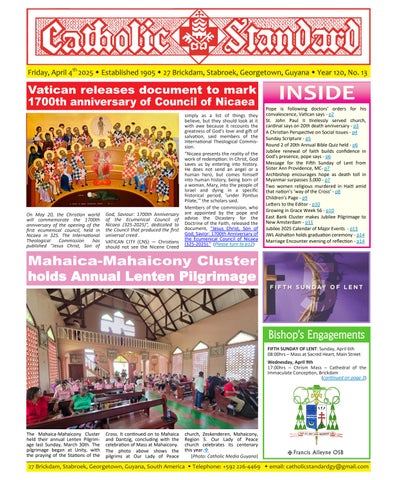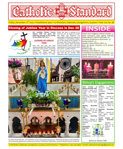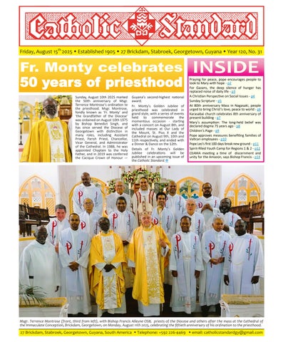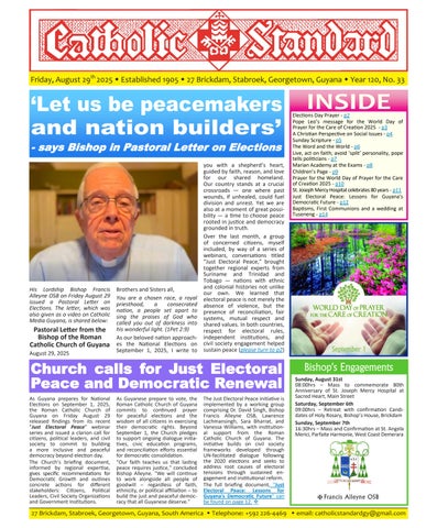 The Catholic Standard is a weekly Catholic publication, the sole religious newspaper in Guyana. It was founded in April 1905 by Bishop Theodore Galton SJ. At the time of its founding, the Catholic Standard was a monthly magazine and remained that way for almost 50 years. In 1954, the Catholic Standard newspaper emerged as a ‘monthly paper’ with the monthly magazine. It developed rapidly to a fortnightly paper, and in January 1962 became a weekly newspaper out every Friday for the weekend, which it has remained since. During the turbulent period of the 1970’s, 80’s and early 90’s, the Catholic Standard, under the editorship first of Fr. Harold Wong SJ, then of Fr. Andrew Morrison SJ (Editor 1976-1995), played a pivotal role in the struggle for democracy in Guyana, as it was the only independent medium during this time. Fr. Morrison earned international recognition for himself and the Catholic Standard, receiving six awards for his and the Standard’s struggle for press freedom and democracy in Guyana. In 2012, the Catholic Standard e-paper was introduced, so the Standard became available both in the print edition, as well as the e-paper, which is emailed to subscribers every week. In 2020, due to the challenges of the COVID-19 Pandemic, the paper ceased printing but the e-paper is still exclusively available weekly, either via email to subscribers and now via WhatsApp.