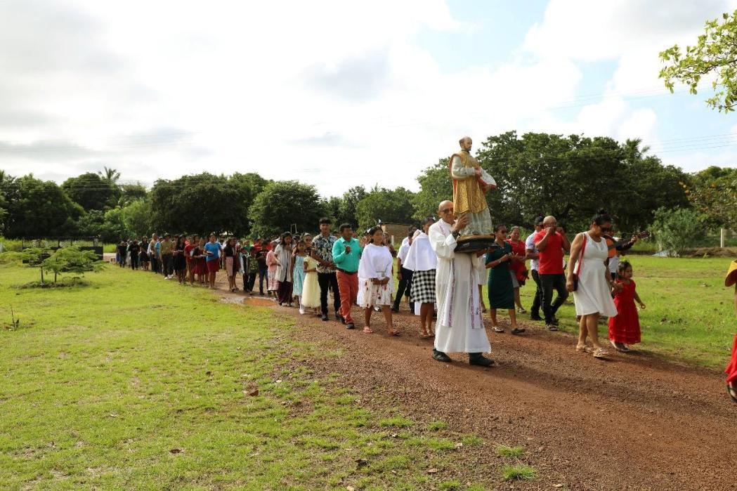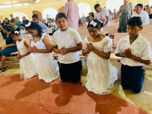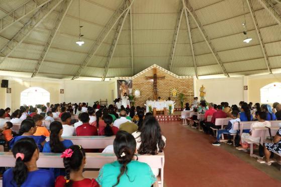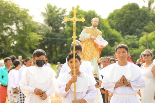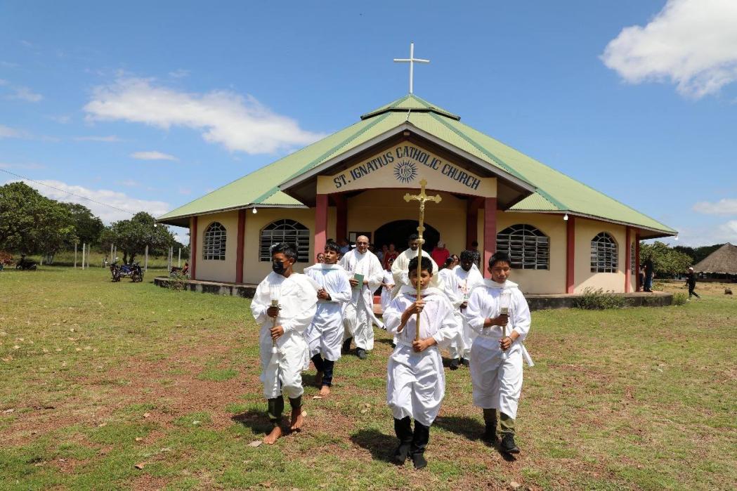 The community of St. Ignatius, Central Rupununi, Region 9, Essequibo, Guyana, on Sunday July 27th celebrated the Feast of St Ignatius ahead of its July 31st date. The community entered the Church with a grand procession, and five children made their First Holy Communion. ❖