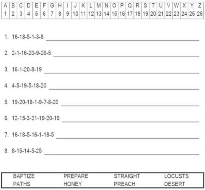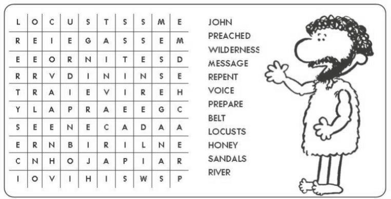 Many years ago, a man called John the Baptist preached about what it means to be ready for Jesus. John the Baptist was a different kind of man. He wore clothes made of camel's hair with a belt around the waist. He ate locusts (grasshoppers) and wild honey. John the Baptist travelled throughout the wilderness of Judea. His message to the people was, "Repent, for the kingdom of heaven is near."