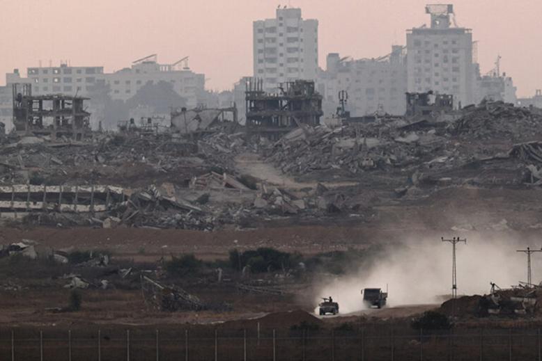 Israeli military vehicles maneuver inside the Gaza Strip as seen from Israel June 25, 2025. (OSV News photo/Amir Cohen, Reuters)