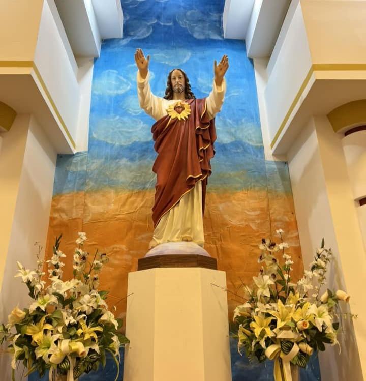 Thehistoryofthedevotiontothe Sacred Heart is derived from Sr. Margaret Mary, a French nun who received a series of apparitions from Jesus between the years 1673 to 1675. The picture above shows the statue of the Sacred Heart of Jesus in the present Sacred Heart Church.❖