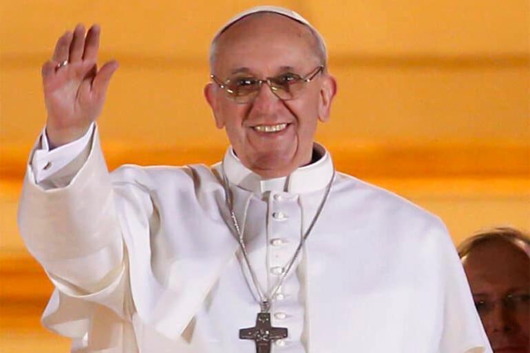 Pope Francis appears for the first time on the central balcony of St. Peter's Basilica at the Vatican March 13, 2013, the evening he was elected the 266th Roman Catholic pontiff and the first of many occasions when he referred to himself as the bishop of Rome.