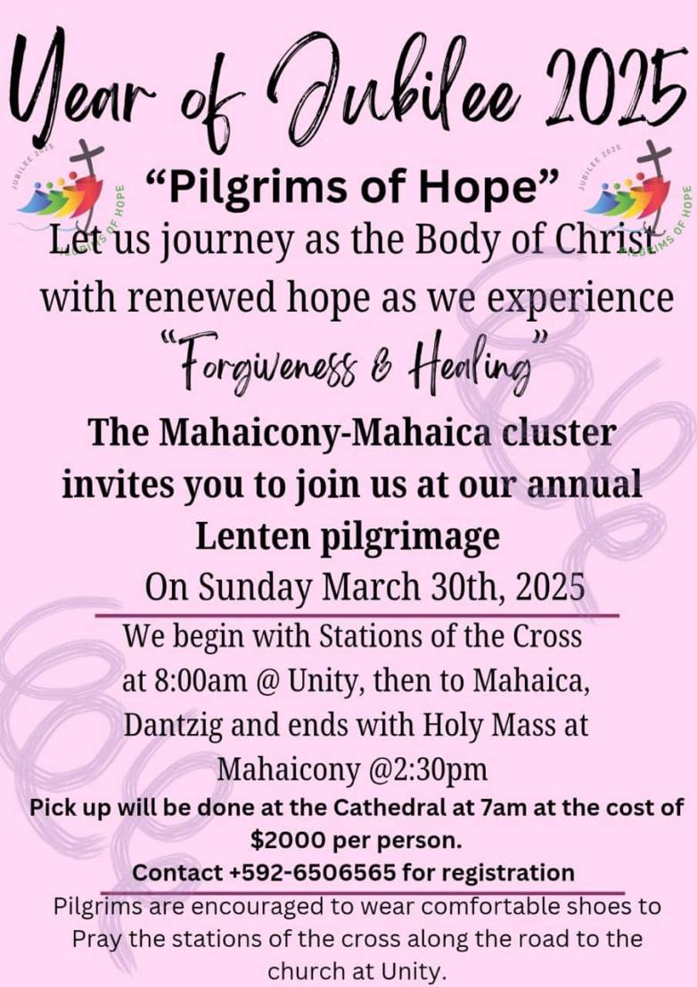 07:30hrs – Mass at Church of the Annunciation, Malgre Tout, West Coast Demerara. 12:45hrs – Departure of the Nuncio