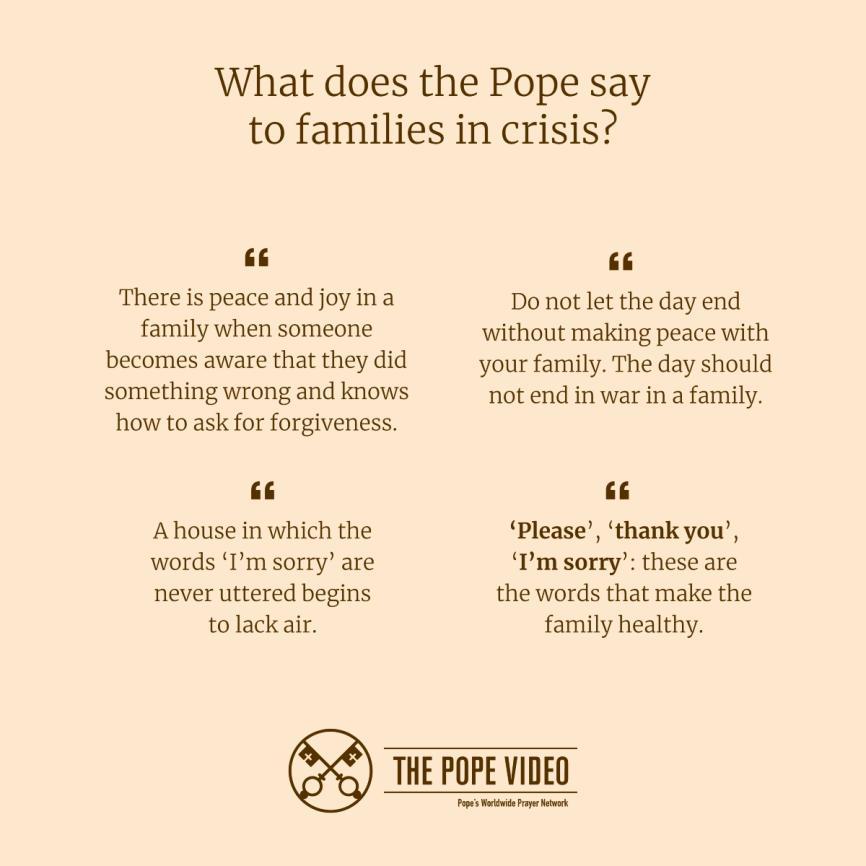 "Let us pray that broken families might discover the cure for their wounds through forgiveness, rediscovering each other’s gifts, even in their