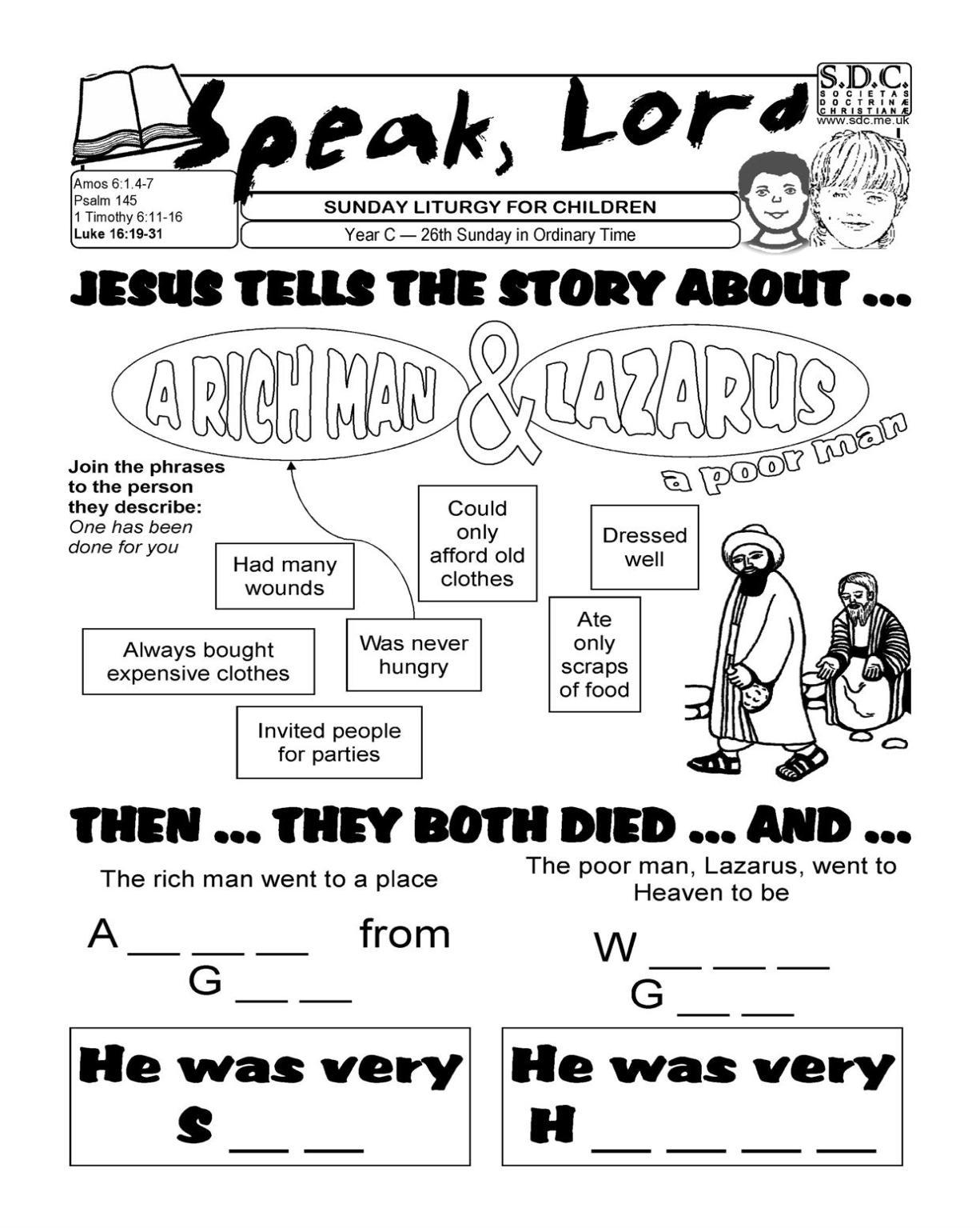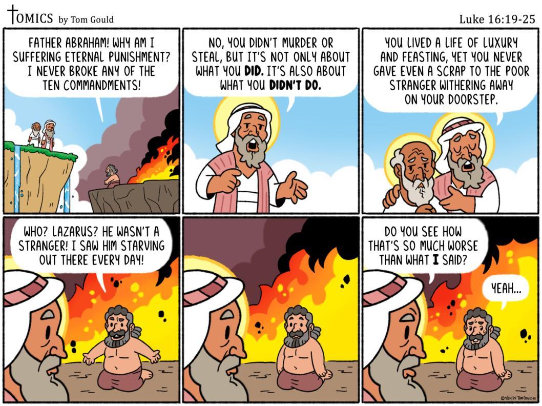 In today’s Gospel reading, Jesus tells the story of the rich man and Lazarus.