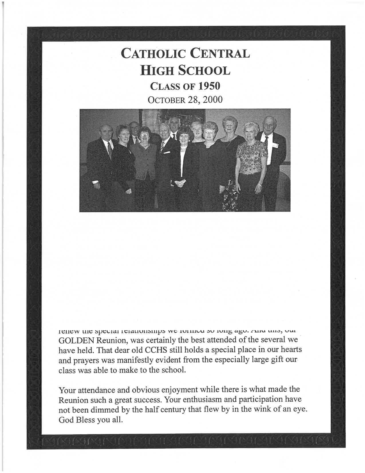CCHS Class of 1950 50th year Reunion Booklet by Catholic Central School - Issuu