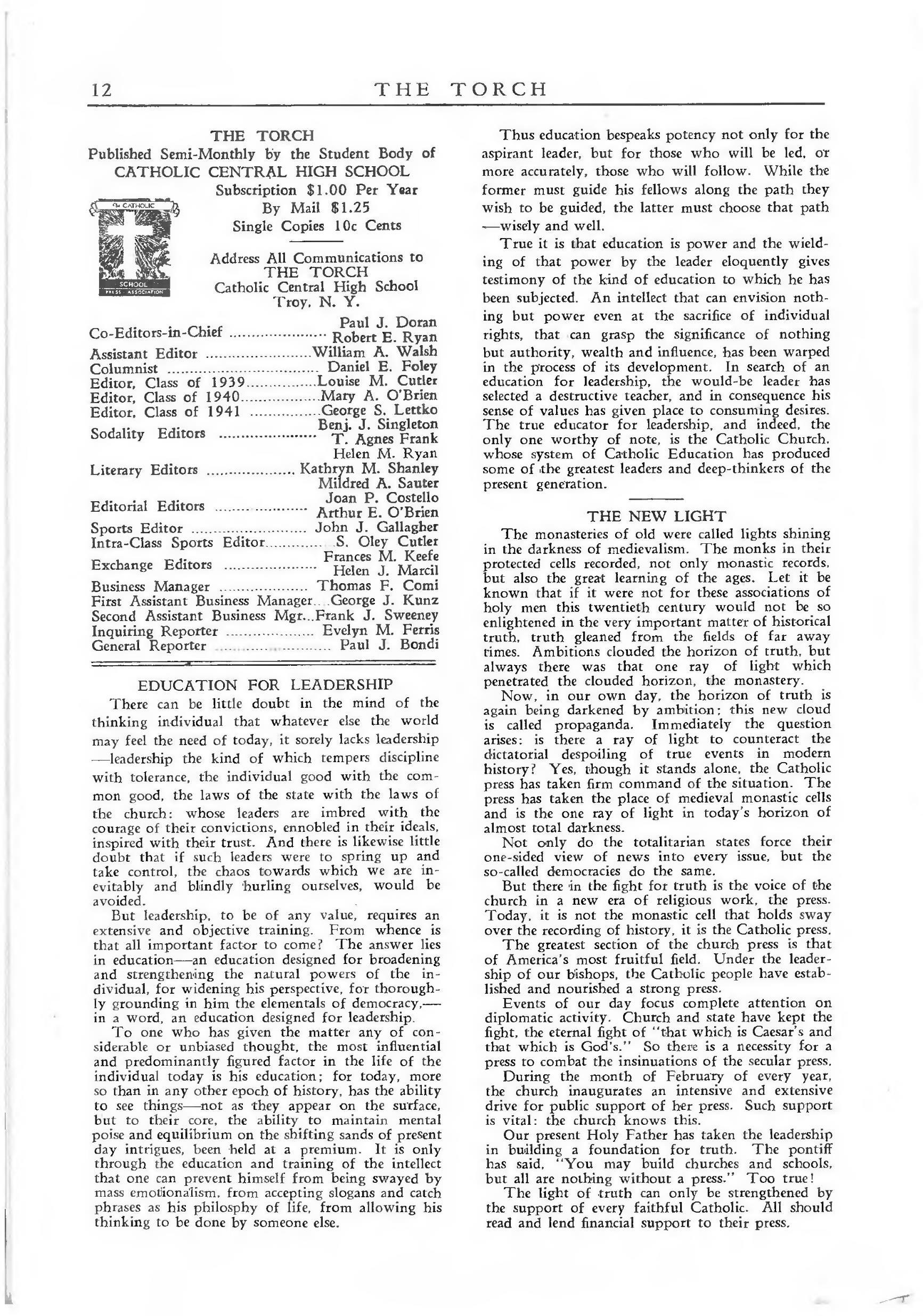 The Torch February 1939 by Catholic Central School - Issuu