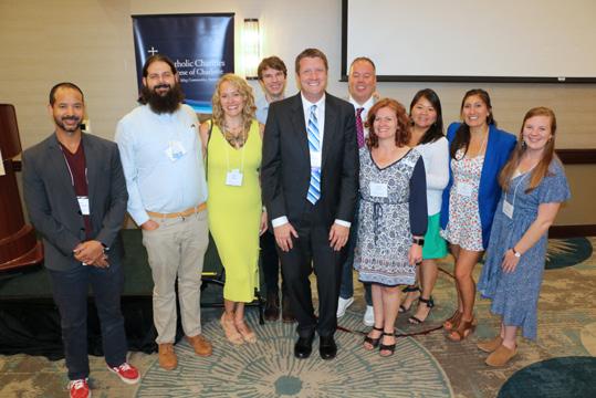 The Refugee Mentoring Ministry from Saint Peter’s Catholic Church received the Fruit of the Vine Award for their exceptional assistance to newly arrived refugees in our community. Led by Martha Schmitt, this team of over 50 volunteers has exemplified the corporal works of mercy and significantly improved the lives of those facing challenges in resettlement. Their work is a testament to the power of community.
