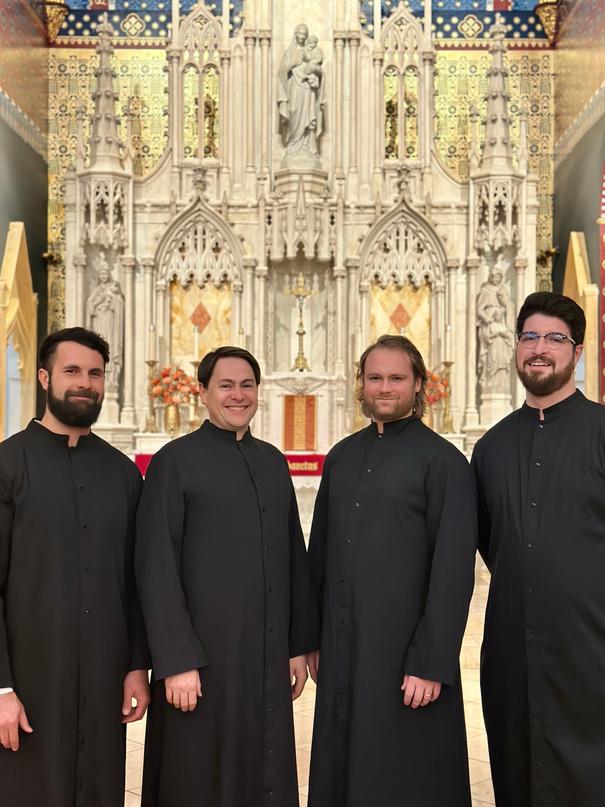 By singing for liturgies, performing educational concerts, and teaching, both in person and remotely with our online course, Gregorian Chant Academy, and our Chant School Podcast, we introduce people of all musical backgrounds to the Church’s rich heritage of liturgical music. Giorgio Navarini founded Floriani originally as a barbershop group as a student at Thomas Aquinas College, where he met Thomas, Joe and Graham, each of whom sang in his choir at different times. Eventually, they moved on from barbershop to sacred music, and realized it was this which they truly loved to sing Years later, after