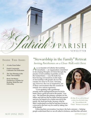 page 2 3 A Letter From Father 4 Parish Community Celebrates Our Dedication 6 The True Meaning of the Word “Stewardship” 7 Book Club Brings Parishioners Together for Reading, Reflection and Fellowship MAY/JUNE 2023