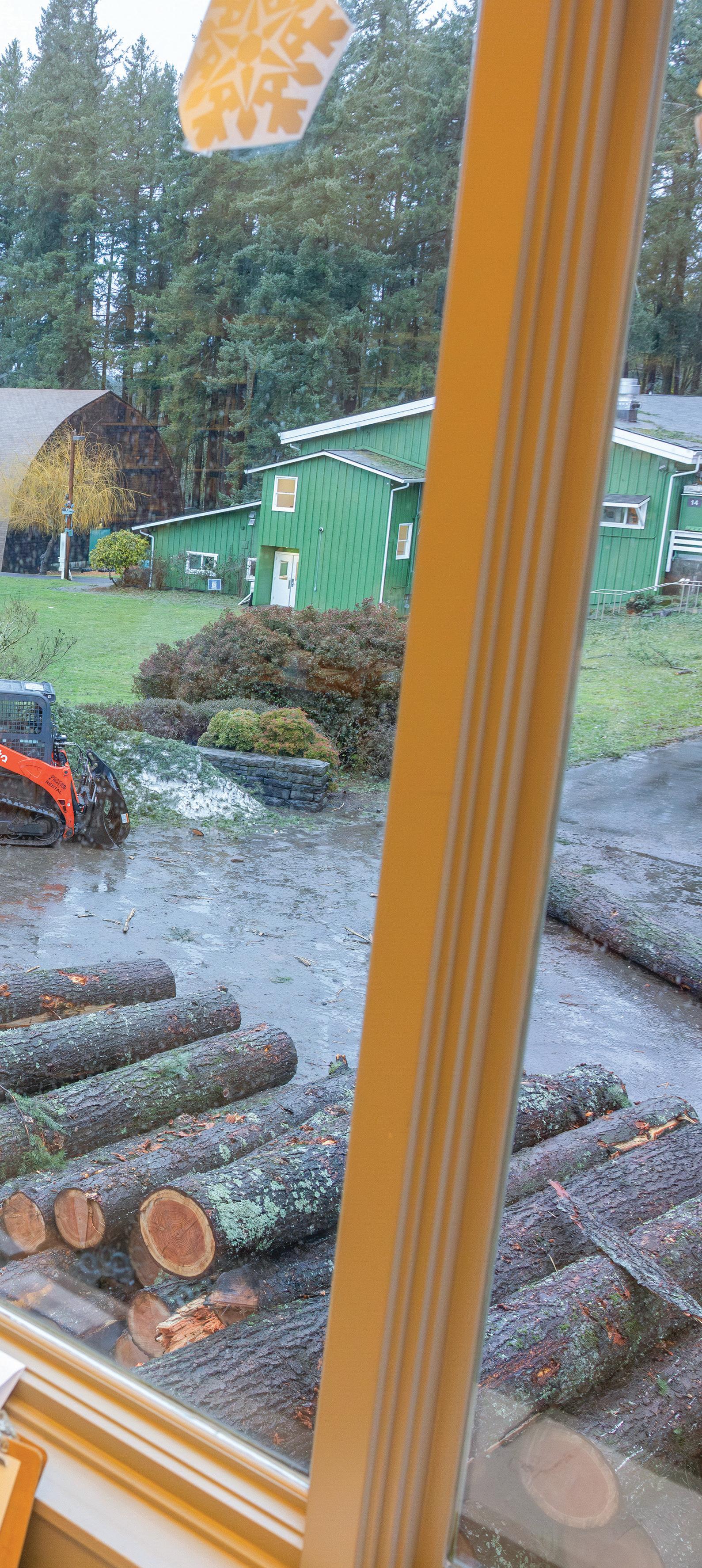 Over three days in January 2024, Portland was blasted by a severe-weather phenomenon, a combination of high winds, rain, and freezing temperatures that caused roots to break and trees to topple. In the storm’s aftermath, the Catlin Gabel campus was littered with broken timbers. The Lower School, Beehive, and Barn were closed while crews worked to remove tons of debris and make the area safe for students and teachers to return.