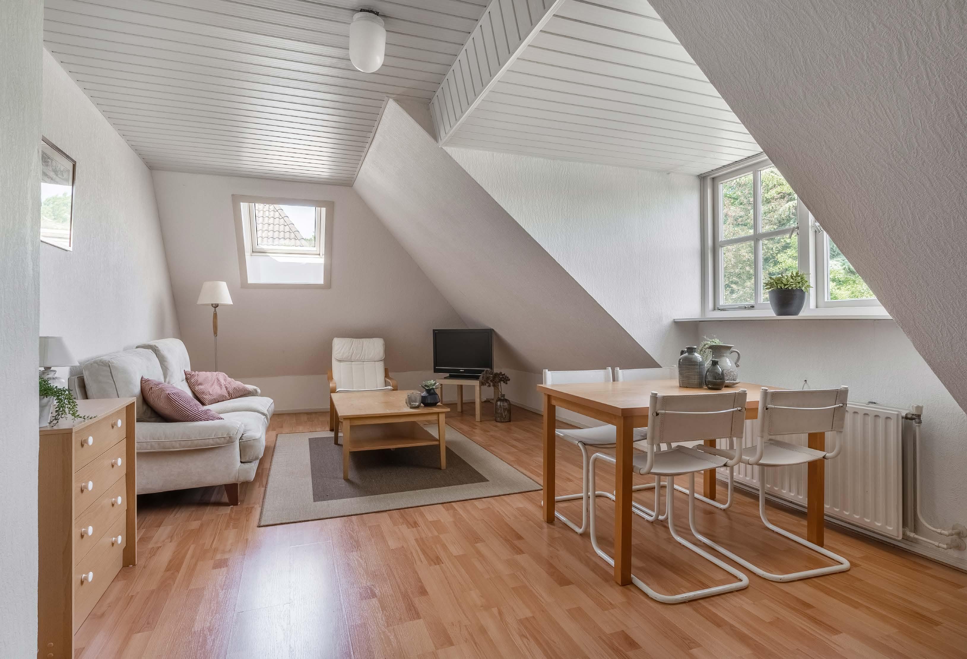 Above the first floor is a spacious attic. It is accessible via a separa te staircase in the storage room, adjacent to bedroom 6.