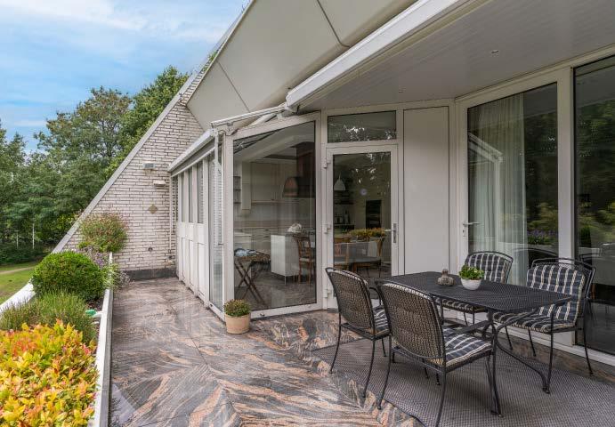 3. Met riant dakterras over de volle breedte van het appartement, op het zuidwesten met oppervlakte van circa 33 m² met uitzicht op de magnifiek aangelegde, parkachtige tuin rondom, alle seizoenen mooi!