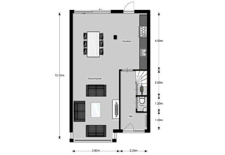 3. Riante woonkamer met luxe open keuken met inbouwapparatuur