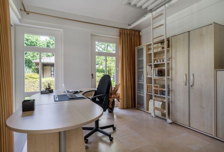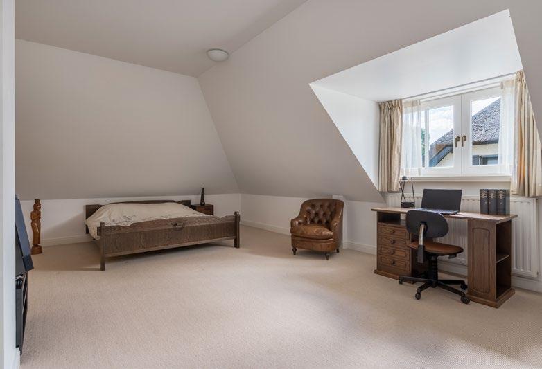 With a spacious living and dining room, six bedrooms/studies and two bathrooms, the whole family has plenty of space. Worth mentioning are the beautiful study, the atelier and the master suite (bedroom, wardrobe wall and bathroom) on the ground floor, overlooking the mature, enclosed garden with plenty of privacy.