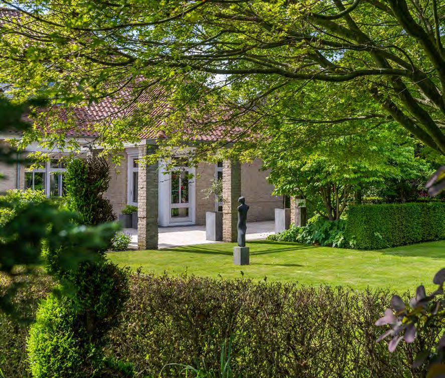 De vele en grote raampartijen in alle gevels geven het huis haar lichte en open karakter; in combinatie met de lange zichtlijnen in de tuin biedt het vrijheid, privacy en ruimte.