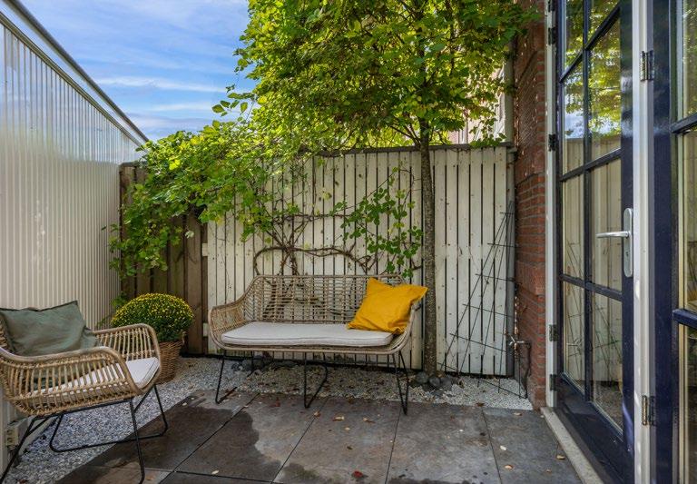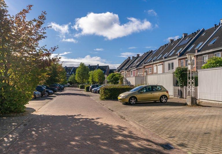 In the courtyard with two gates, outdoor lighting and underground containers, each home in the block has its own parking space. The mature trees, other vegetation and fences are maintained by the VvE. The two gates are electrically operated by each resident. The walkway gate is button operated and locked at night.
