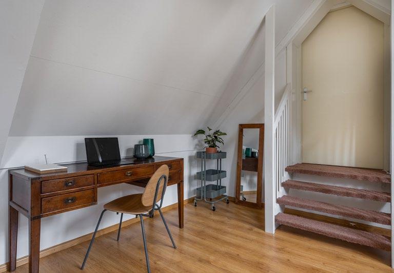 Via de vaste trap is de volgende etage bereikbaar met drie ruime kamers. Slaapkamer 3 aan de achterzijde heeft twee grote Velux dakramen en een maatwerk-kastenwand voor extra bergruimte. Slaapkamer 4 aan de voorzijde heeft een raam in de dakkapel in de voorgevel, met ernaast een knusse hoek voor een bureau of leeshoekje. Direct voorbij de deur zijn de voorbereidingen voor een extra badkamer 2 met douchecabine getroffen, het toilet is reeds aanwezig. Met desgewenst een tussenwand en een extra deur is die eenvoudig te realiseren. Dankzij de hoek blijft dan nog steeds een behoorlijke slaapkamer 4 over.