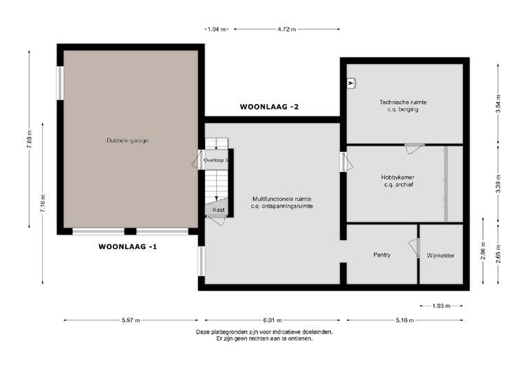 Naast de dubbele inpandige garage is er een groots en multifunctioneel souterrain met woonoppervlakte van circa 100 m², ideaal voor entertainment- en/of ontspanningsruimte, ook voor extra woon-/werkruimte.