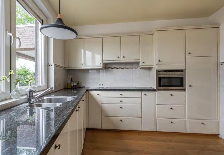 The fact that they had no plans to move is evident from the continuous adjustments and improvements they made; for example, all façade panels were replaced with the lowmaintenance and colourfast Keralit, the plastic rainwater drains were replaced with zinc, and the back garden with pond was redone by a landscaper. What will they miss? “The privacy in our lovely garden. And the spaciousness of the neighbourhood. We still live here with a lot of pleasure.”