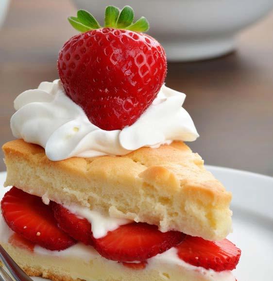 4. Assemble: Slice shortcake into wedges. Top each slice with strawberries and their juice, followed by a scoop of whipped cream.