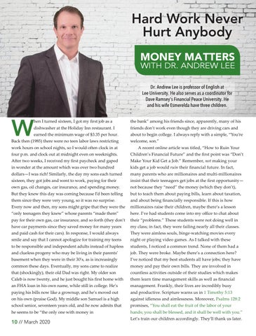 WITH DR. ANDREW LEE Dr. Andrew Lee is professor of English at Lee University. He also serves as a coordinator for Dave Ramsey’s Financial Peace University. He and his wife Esmerelda have three children.