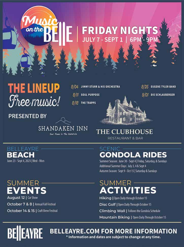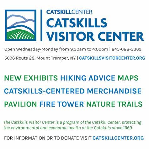 The Catskill Mountain Region Guide is published 12 times a year by the Catskill Mountain Foundation, Inc., Main Street, PO Box 924, Hunter, NY 12442. If you have events or programs that you would like to have covered, please send them by e-mail to tafts@ catskillmtn.org. Please be sure to furnish a contact name and include your telephone number and e-mail address. To receive submission guidelines send a request to tafts@catskillmtn.org.