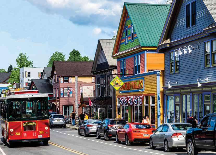 Commercial center where dozens of local businesses occupy renovated buildings cheerfully painted in pastel colors. You’ll find many shopping and dining options here, along with performing arts at the Catskill Mountain Foundation’s Orpheum Performing Arts Center. The “Paint Project” featured on the Today show has attracted tourists and new businesses, and helped Main Street secure historic district designation.