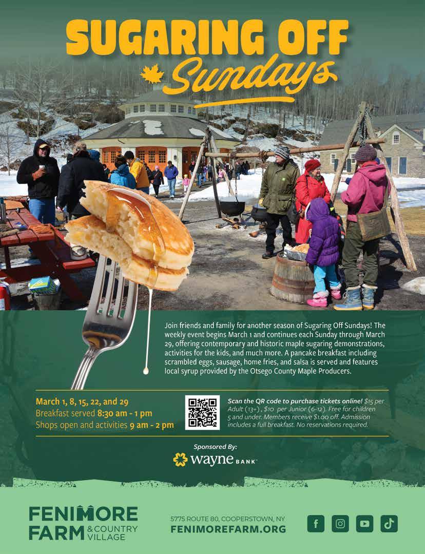 Fenimore Farm & Country Village is located at 5775 NY-80 in Cooperstown. For more information or to purchase advance tickets for Sugaring Off Sundays, please visit fenimorefarm.org.