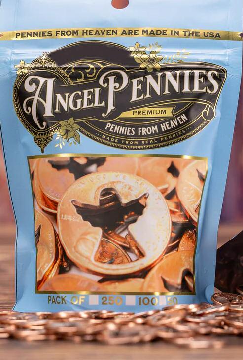 nnies from Heaven g of 50 pennies; These unique die-cut nnies are made from real pennies with ngel, heart or cross cut out of them also a neat conversation piece and angelistic tool in one easy-to-carry, nvenient penny. Give to your family, ends, neighbors, and everyone you et MADE IN THE USA $19.99/bag Angel #131534 Cross #131533