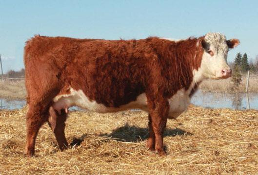 O ering choice on these two full sisters. Both have an excellence coat of hair, eye pigment and lots of style. Rosie 4A placed 2nd in class at the Manitoba Field Day. She is bred to Leveldale Zorro 829T 32Z and is safe to calve in early April. Rosie 2B took 4th place in her class at Portage Exhibition in July and was a class winner at the Manitoba Field Day. eir full brother was 2013 Grand Champion Bull and 2014 Reserve Grand Champion Bull at the Portage Exhibition. He is our main herd sire now. eir mother is our top cow, who we plan to ush in the near future. Only 5 years old and she has a awless udder. e maternal strength of these two sisters is outstanding and will make strong additions to any herd.