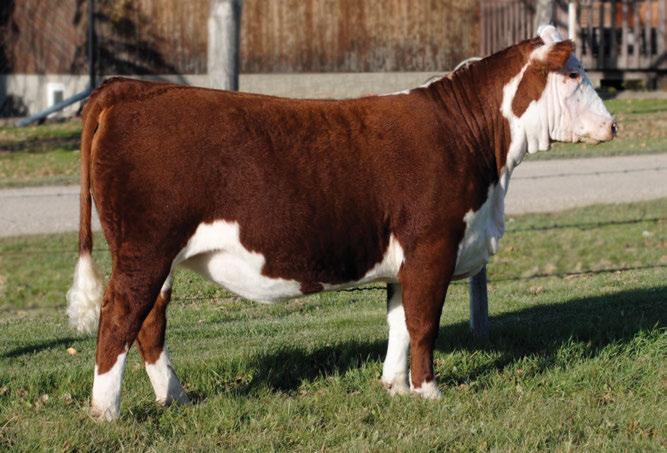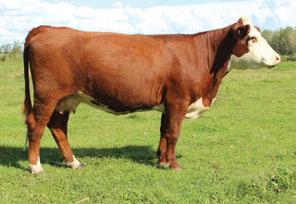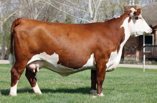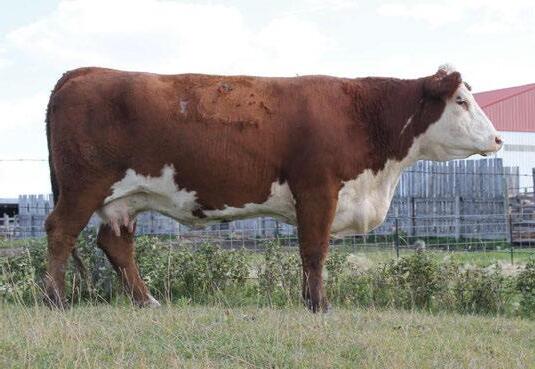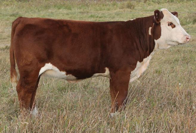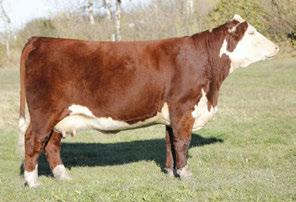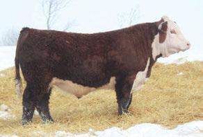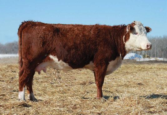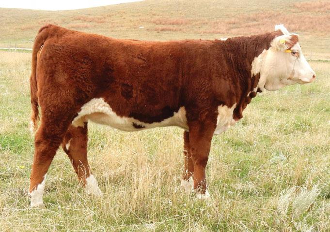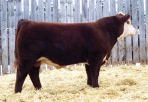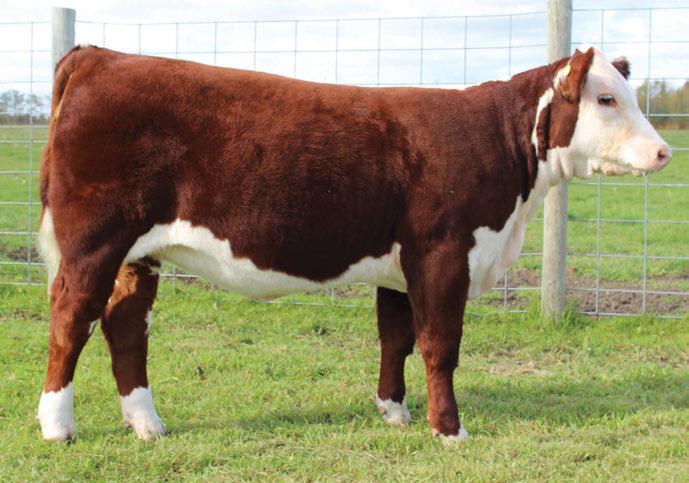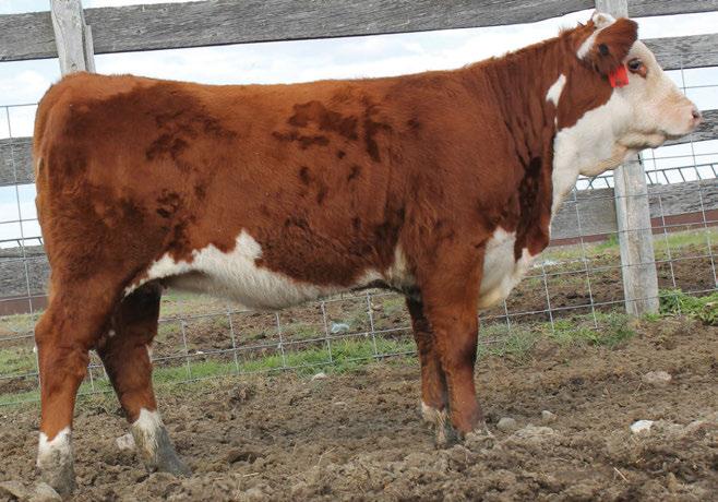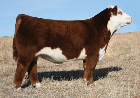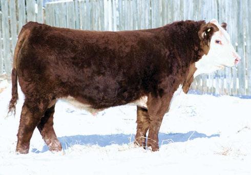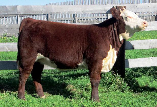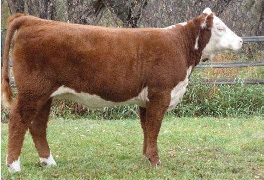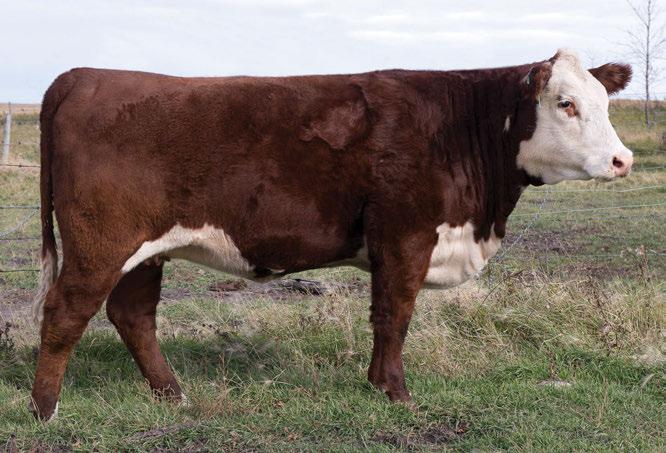 is Tank 10W heifer is directly from the very top of our replacement heifer pen. Here are all the tools and cosmetics to make a great show prospect and brood cow. She’s got a picture perfect head, fully pigmented, smooth shouldered, good neck extension, depth of rib and a mother who has the best udder on the farm. To top it o , she is bred to have an early March calf by “Covert,” the Untapped son we purchased from Haroldson’s at last year’s Agribition Sale. e resulting calf should be very interesting.