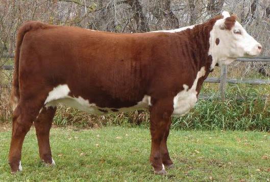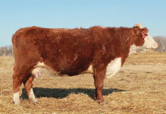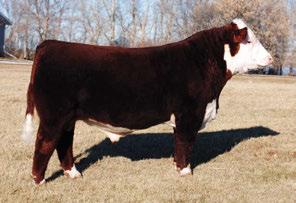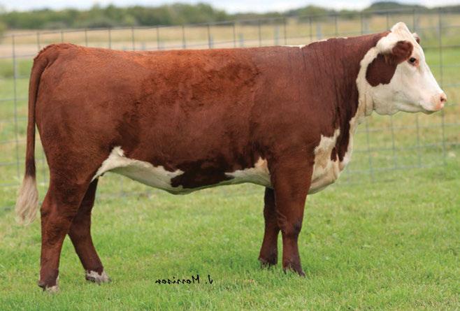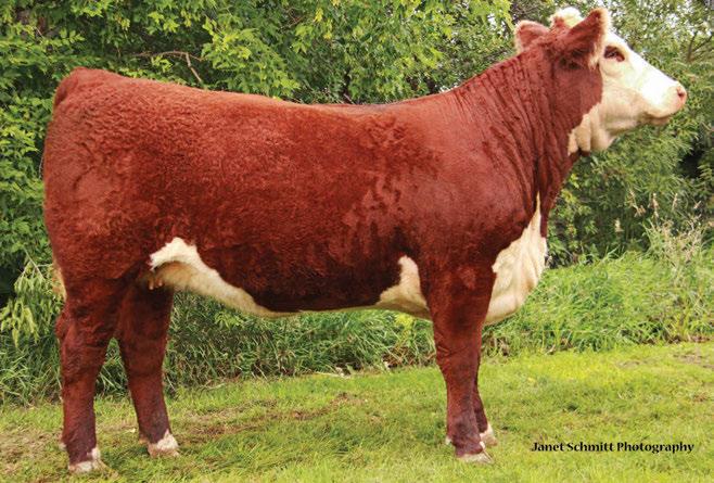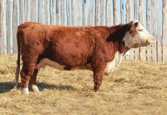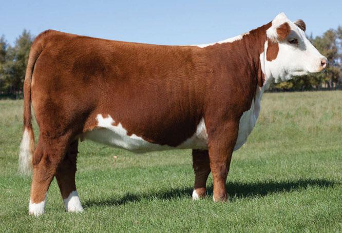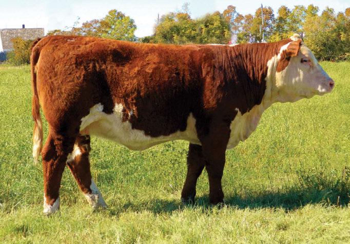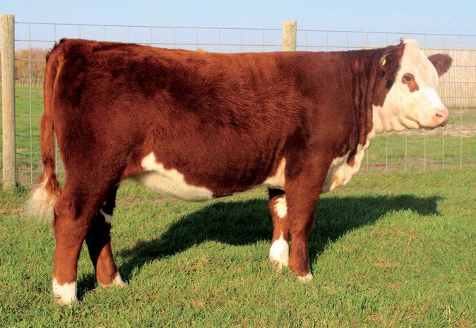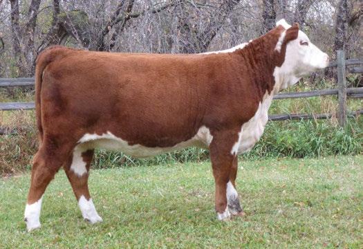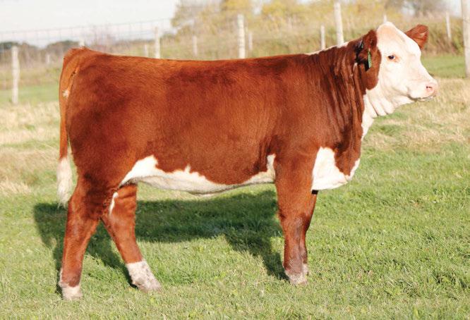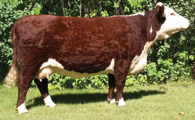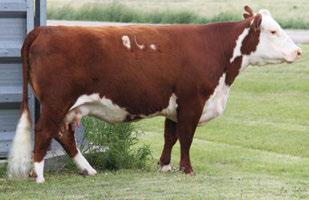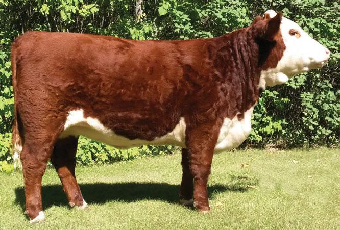 is Tank 10W heifer is directly from the very top of our replacement heifer pen. Here are all the tools and cosmetics to make a great show prospect and brood cow. She’s got a picture perfect head, fully pigmented, smooth shouldered, good neck extension, depth of rib and a mother who has the best udder on the farm. To top it o , she is bred to have an early March calf by “Covert,” the Untapped son we purchased from Haroldson’s at last year’s Agribition Sale. e resulting calf should be very interesting.
