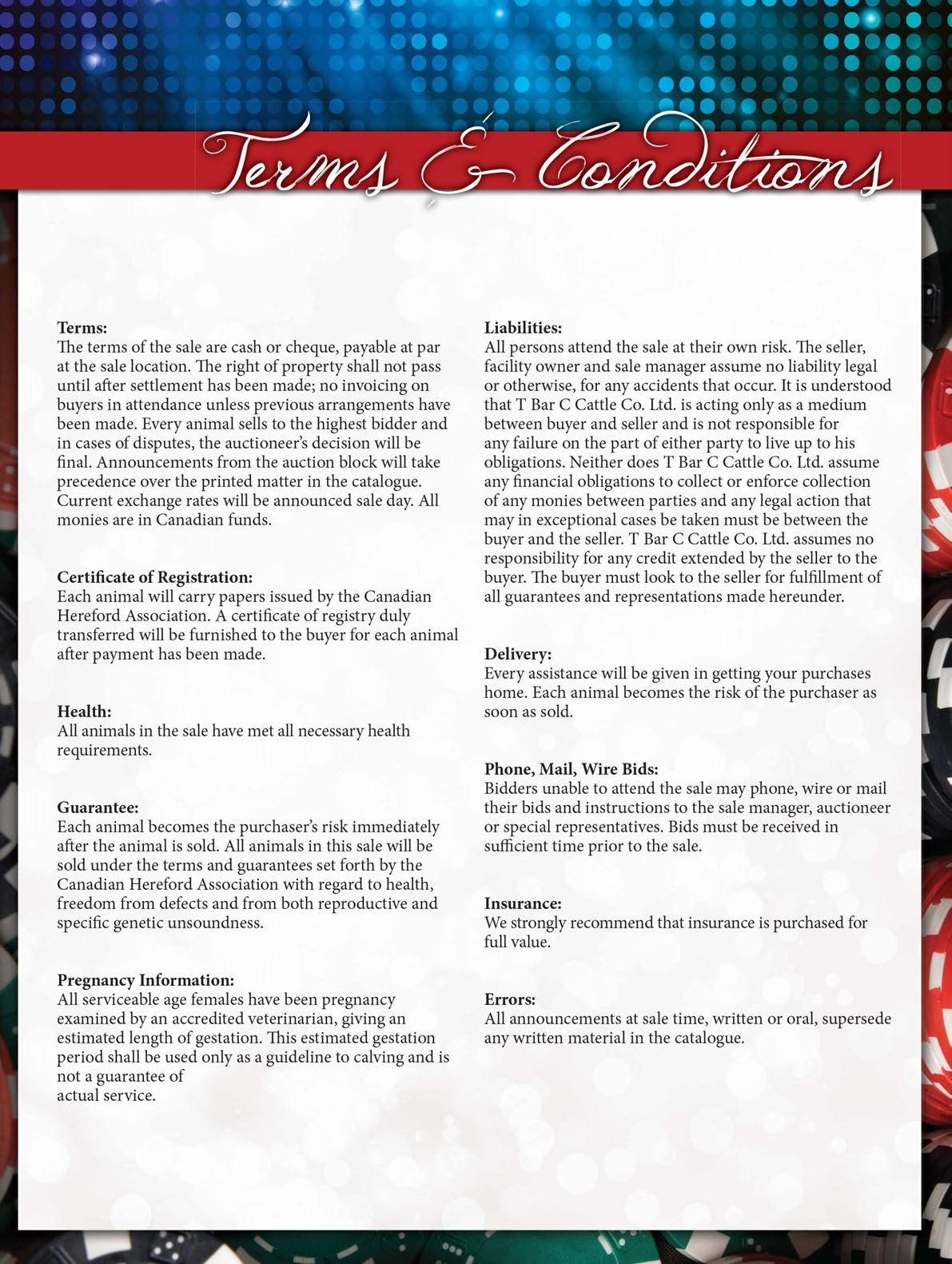 Plan to be with us in Regina on November 27th. If we, at T Bar C, may be of any assistance, prior to or sale day, do not hesitate to give Shane, Ted or myself a call as we would be pleased to assist you with your selections.