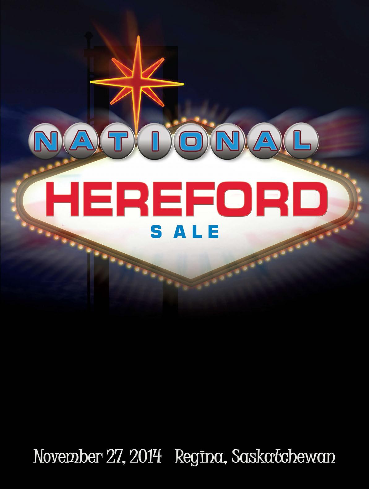 Welcome to Canadian Western Agribition 2014 and the Agribition Hereford Sale. Amid the excitement of a record setting commercial market, we have seen the Hereford breed experience a new and added demand for breeding stock, especially by cow calf producers who are seeking breed identity and hybrid vigor. Over the past twelve months, we have seen Hereford bull sales reaching new highs as demand supersedes supply in both Canada and for our neighbors to the south. e outlook for the spring of 2015 appears even more exciting for those who will be selling bulls. As North America begins its restocking, the demand for Hereford and Hereford-in uence breeding stock will be from an unprecedented market; and more importantly, in an unprecedented era.