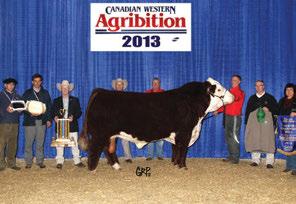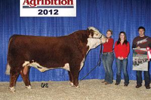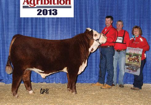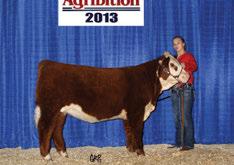 In these bullish times, we must look to upgrade quality and quantity in our breeding programs. e 2014 lineup in the Agribition Hereford sale is the deepest and strongest ever selected and assembled in its history. A powerful o ering of bred females headline the sale.....all with donor possibilities to start your new foundation cow-line. e heifer calves are exciting...new fresh genetics with a competitive edge for the next-day show and most importantly, full of added value to any or all programs. Do not over look the powerful herd sire prospect and those who hate trucking bills, the embryo o erings have interesting possibilities. Unlimited opportunities abound at Agribition 2014!