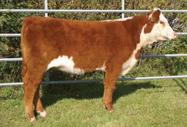 is is the rst purebred heifer thta we have ever sold. She is out of the GH Adams Shadow Rising ET 406X that won Reserve Senior Champion Bull Agribition in 2012 and a cow we purchased from Bar JB dispersal sale. She is moderate framed, with style, volume and the look of a breeding female. is heifer is pigmented and out of a solid marked cow with ample eye appeal.
