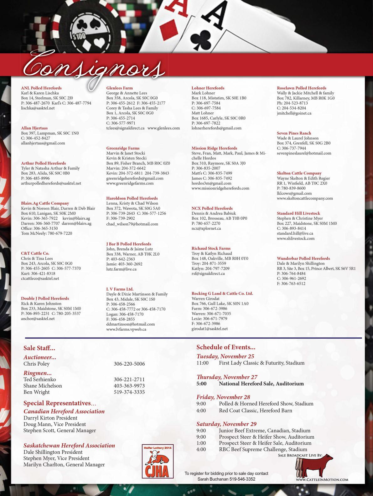 Plan to be with us at Agribition to see the future of the great Hereford breed. For those who cannot attend, the sale will be broadcast live on the internet through Cattle in Motion.