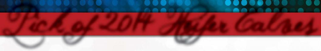 We are o ering the pick of our 2014 born heifer calves. is is a diverse set of heifers with a mix of horned and polled genetics from many di erent pedigrees. Highlighting the sire group are two Agribition Supreme Champions, UPS Uptown and Big Gully Bounty 517U, along with the rst daughters of C e Chive ET. We feel con dent we have a female that would complement any herd. Feel free to contact us for more details on the heifers or to stop in and see them yourself. Pick to be made by December 31, 2014.