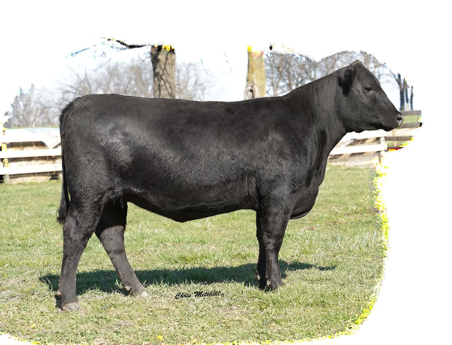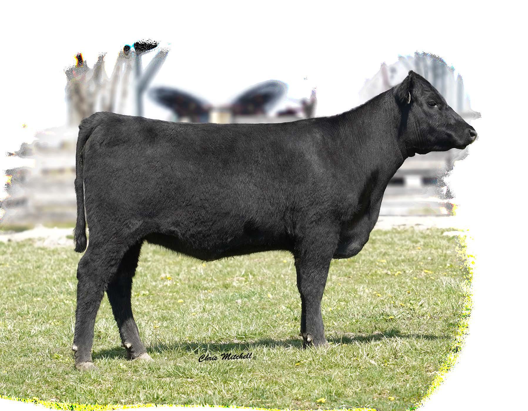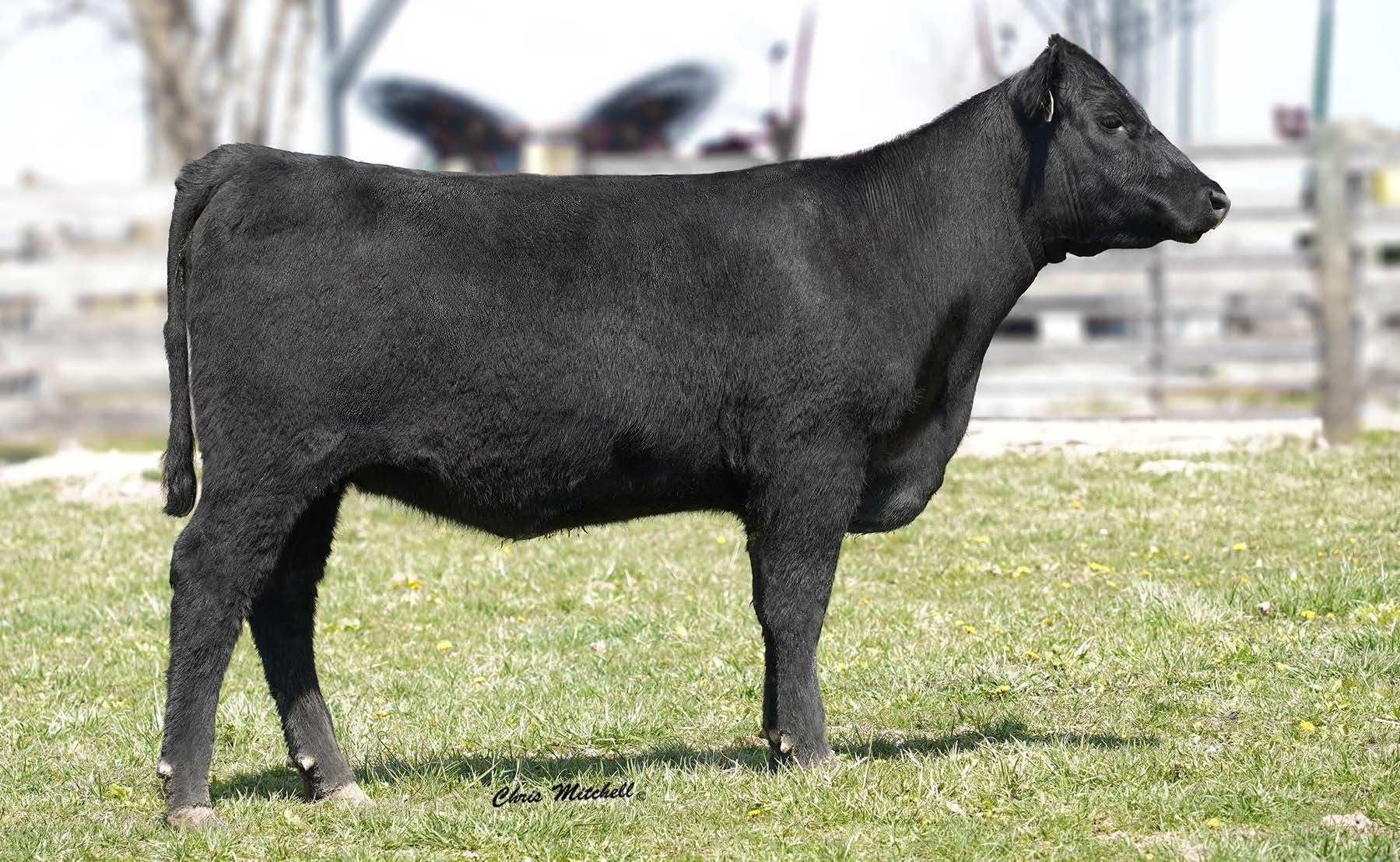 A double digit calving ease Plus One daughter that stems from a dam that combines Hi Tech and the Pathfinder Sire Top Game. You have to appreciate the combination of efficiency and ribeye this female possesses. She sells with Lot 57A, a bull calf (2202), born 12/13/2022 by DB Iconic.