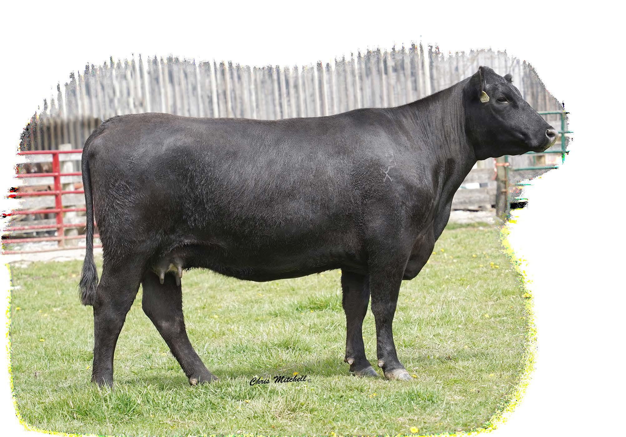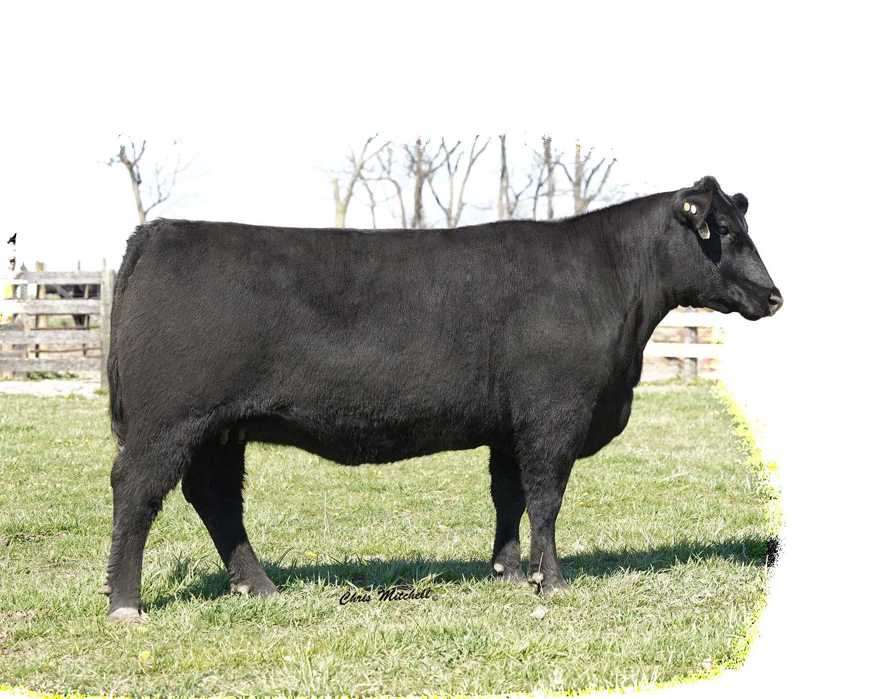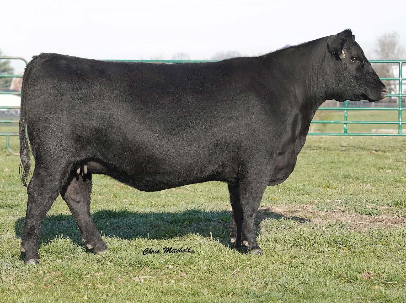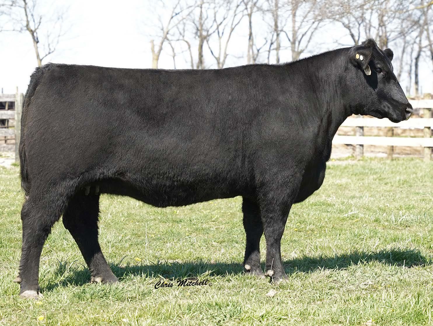 A double digit calving ease Plus One daughter that stems from a dam that combines Hi Tech and the Pathfinder Sire Top Game. You have to appreciate the combination of efficiency and ribeye this female possesses. She sells with Lot 57A, a bull calf (2202), born 12/13/2022 by DB Iconic.