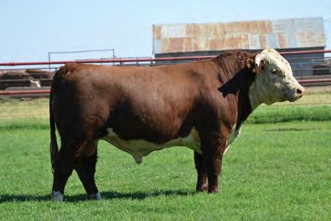 M HEAVY METAL 9177 DOB: 2/15/2020 HORNED ACTUAL BW: 66 ACTUAL WW: 790 ACTUAL YW: 1010 +3.2+3.6+48+84+21+$336+$107 NG PEARL U11 Red-necked, red-legged, rugged-range bull here, folks. Heavy Metal is big boned and good looking from the side. He is a solid future herd sire. M RALPH 9273 DOB: 3/7/2021POLLED ACTUAL BW: 67 ACTUAL WW: 728 ACTUAL YW: 987 +0.9+3.1 +51 +84 +27 +$348+$103 NG B48 NOTICE Super stout range bull with tons of growth and muscle shape. His dam comes from the heart of our program and has never let us down. I think the world of this moderate, meat wagon. REGISTERED HEREFORD BULLS - LOT65 & 66PAGE 49 65 66 LANGFORDS HEAVY METAL 4502 ET LANGFORDS 5122 ET “WATONGA”