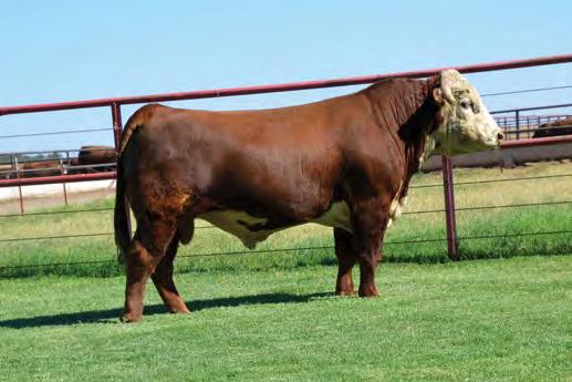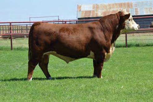 REGISTERED HEREFORD BULLS - LOT 15 & 16 PAGE 24 Here is a dark red, short-marked, horned bull with muscle to share. He is super attractive from the side, big-boned, and extremely sound on the move. This one will surely add some pop to your calf crop. M HOT TROT 9231 DOB: 10/20/2020 HORNED ACTUAL BW: 67 ACTUAL WW: 887 ACTUAL YW: 1215 +0.8+3.2 +51 +85+21+$337+$105 LANGFORDS 5122 ET - “WATONGA” NG A1 M WARRIOR 9415 DOB: 9/29/2020 POLLED ACTUAL BW: 78 ACTUAL WW: 900 ACTUAL YW: +3.2+3.8+48+81+25+$351+$108 LANGFORDS HEAVY METAL 4502 ET MISS SR 9005 ADVANCE C30 Here is a bull that if you need depth and length of body with a big,