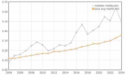 MARBLING (MARB): Carcass marbling score at 475 days.