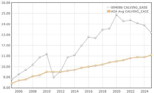 CALVING EASE (CE): Percent of unassisted births when used on heifers.